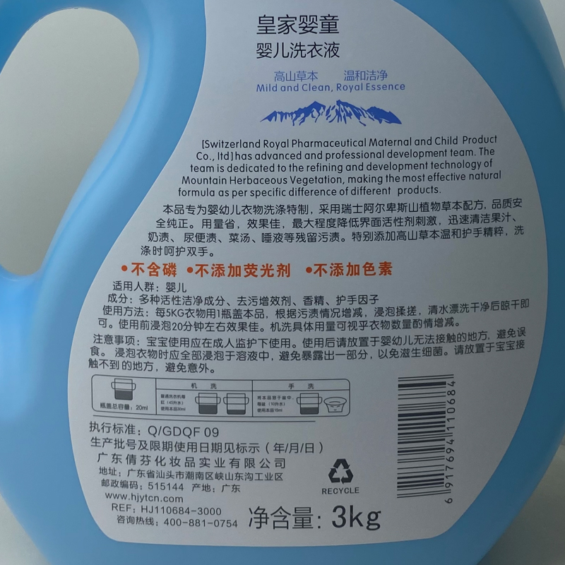 Royal baby baby laundry detergent 3L natural antibacterial antibacterial decontamination baby newborn children special