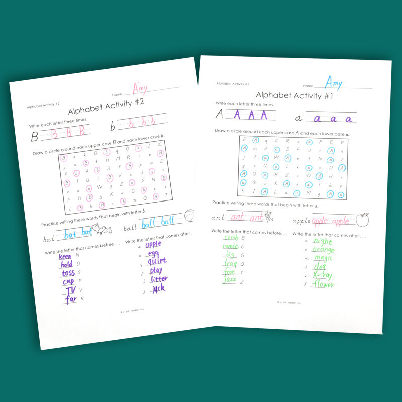 Kindergarten pupils English alphabet English sentence reading training red coloring picture book graffiti exercise paper