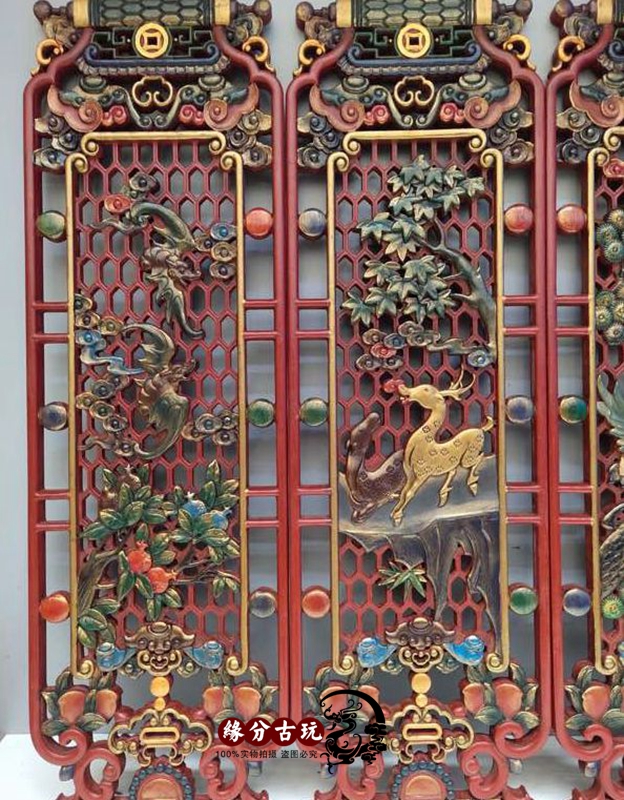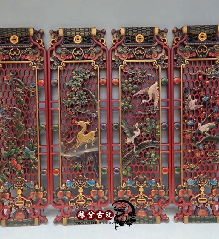 Ancient Play Wood Sculpture Pendant Fu Lu Shouxi Chinese Living Room Background Decoration Painting Real Banksian Zhangmu engraving four screens-Taobao