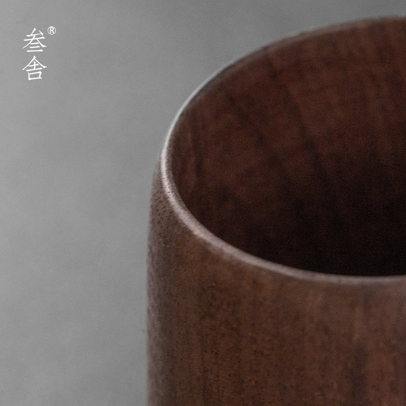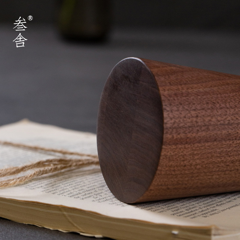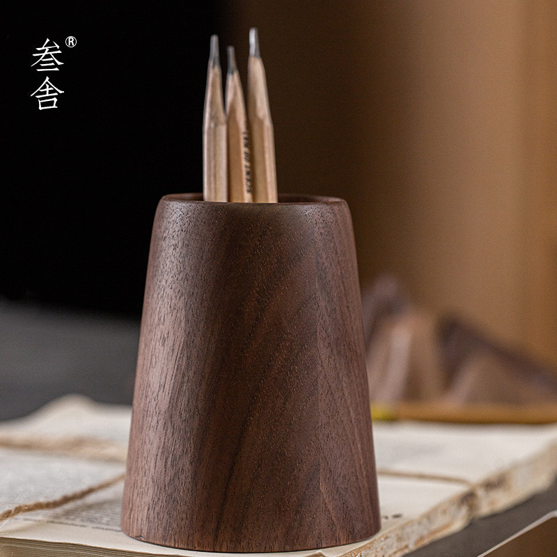 Three house solid wood storage tube stationery supplies student desk Japanese black walnut log ornaments wooden round pen holder