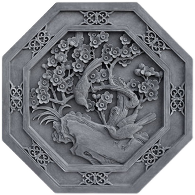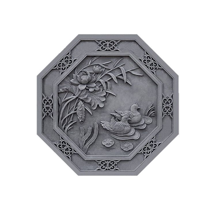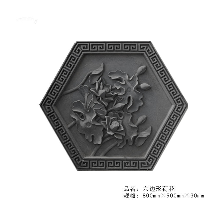 Ancient Built Green Brick Shadow Wall Relief Hexagon Lotus Brick Carved Chinese-style Courtyard Villa Wall Antique Decorative Pendant