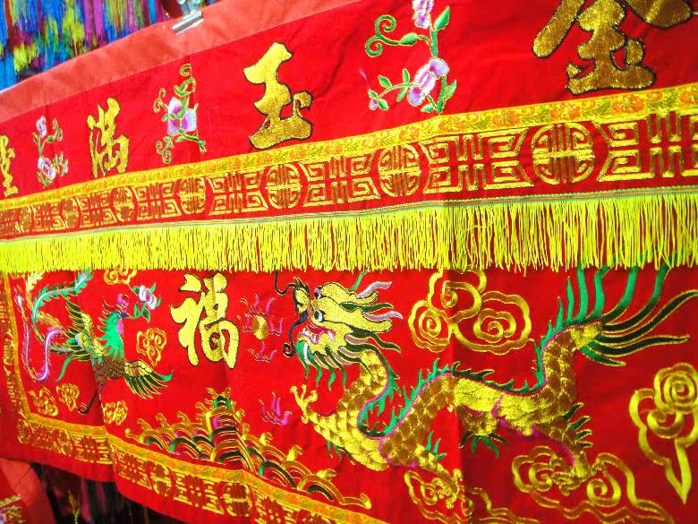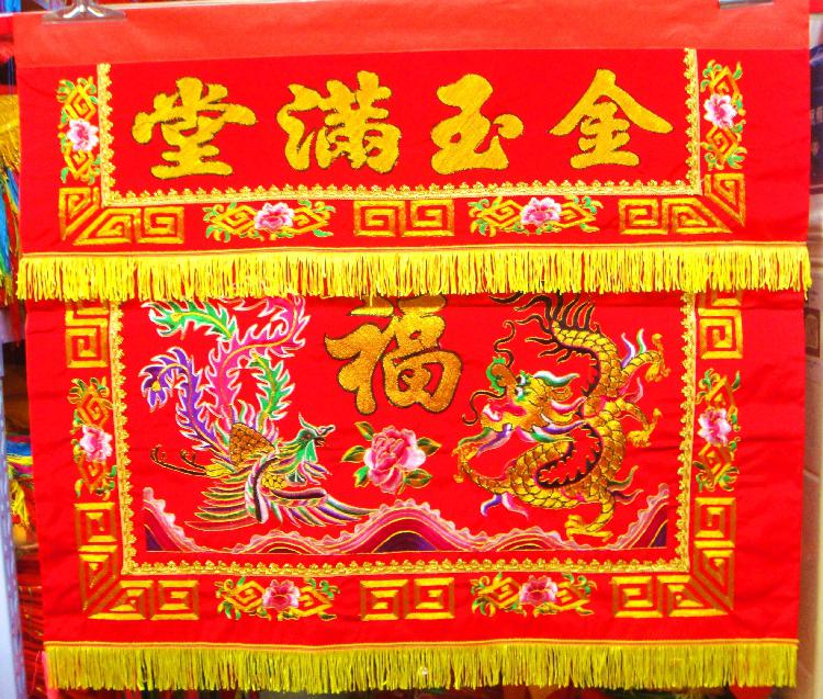 Red velvet twisted gold and jade full hall dragon and phoenix table horizontal apron 1-3 meters middle table cloth 1 2 meters god table circumference 1 5 festive curtains