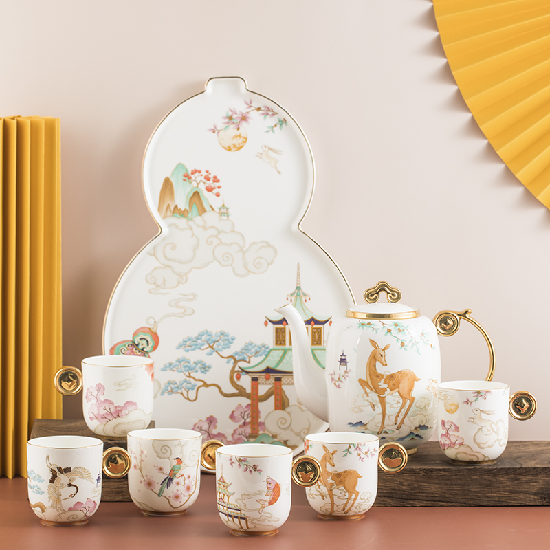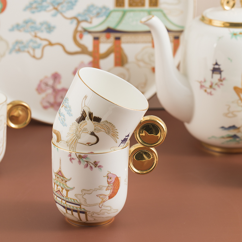 Anna 16 o'clock bone China national tide afternoon tea set set Small luxury coffee cup Housewarming wedding Tanabata Mid-Autumn Festival gift
