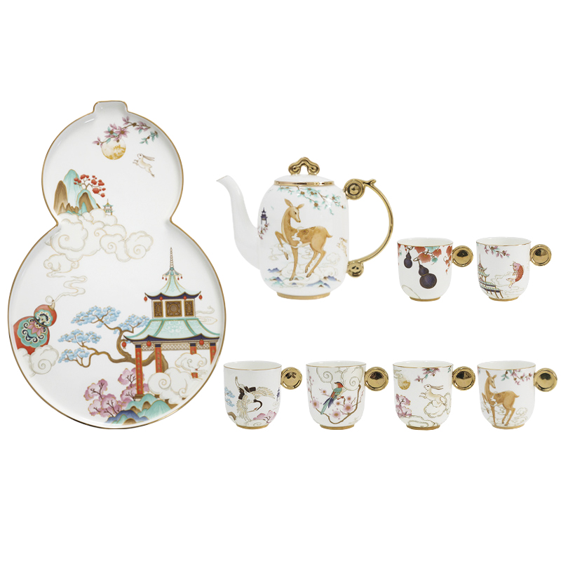 1 Teapot 6 cups 1 Tea Tray Gift Box Set
