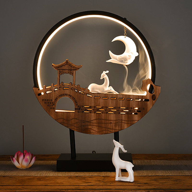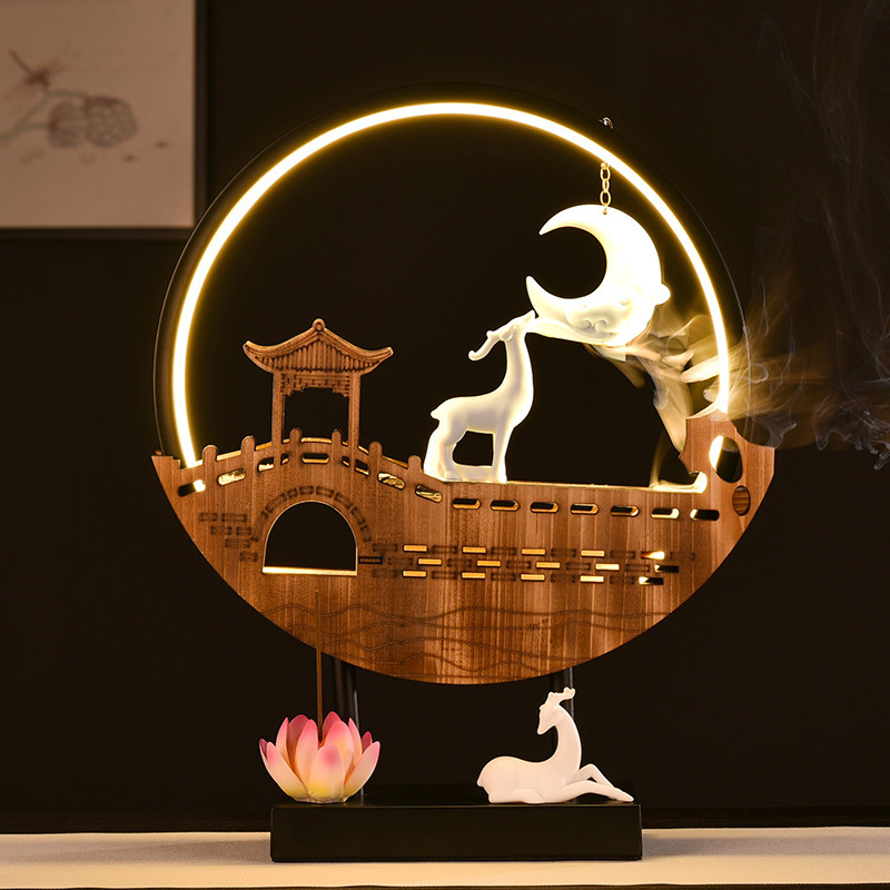 A deer with each other-a full set of 100 incense particles to send incense gifts tote bag single lamp ring wooden bridge seat fawn pair