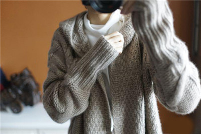 European Station Spring Autumn Wool Needles Weaselwear Korean version Long version over kneecap wool big coat easy to thicken sweater jacket