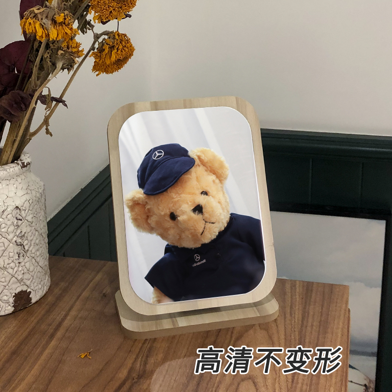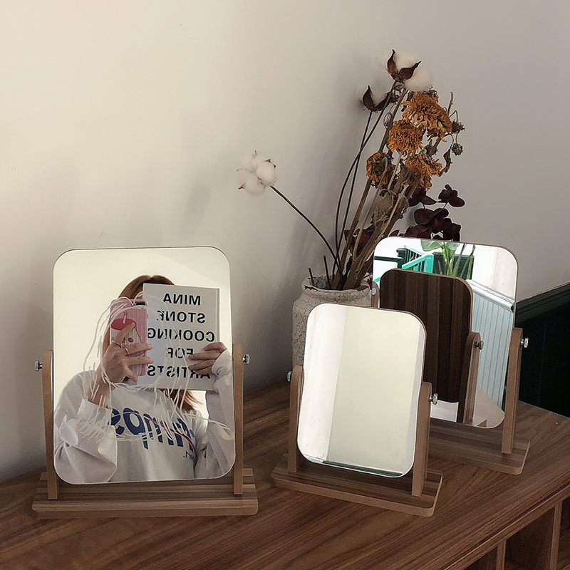 ins wind wooden mirror Net red desktop makeup mirror Female large desktop folding makeup mirror Student dormitory portable