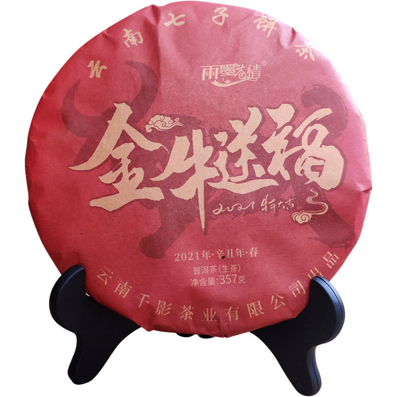 Rain and ink Pale Tea 2020 Golden Bull Gift to commemorate Pu'er Tea raw tea cake Yunnan Menghai Seven Pizza Green Cakes