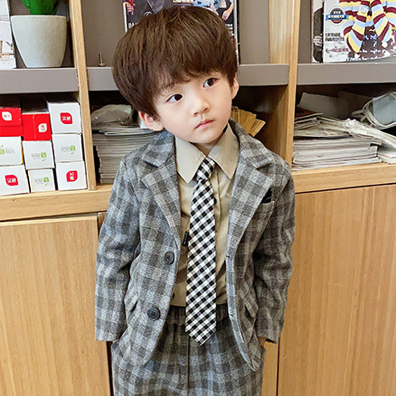 Three-year-old boy clothing 2021 new boy trend suit suit children's winter dress foreign pie trendy ruffers Korean version Western-style suit