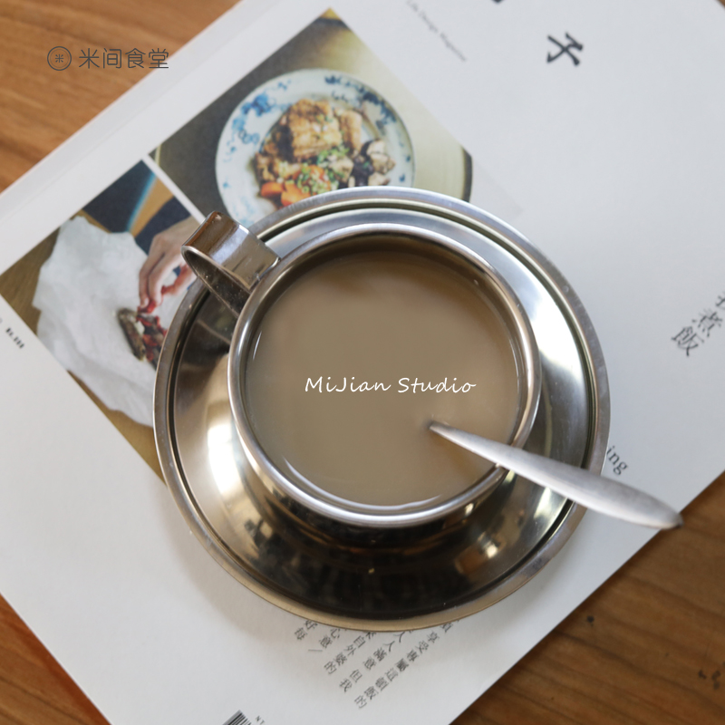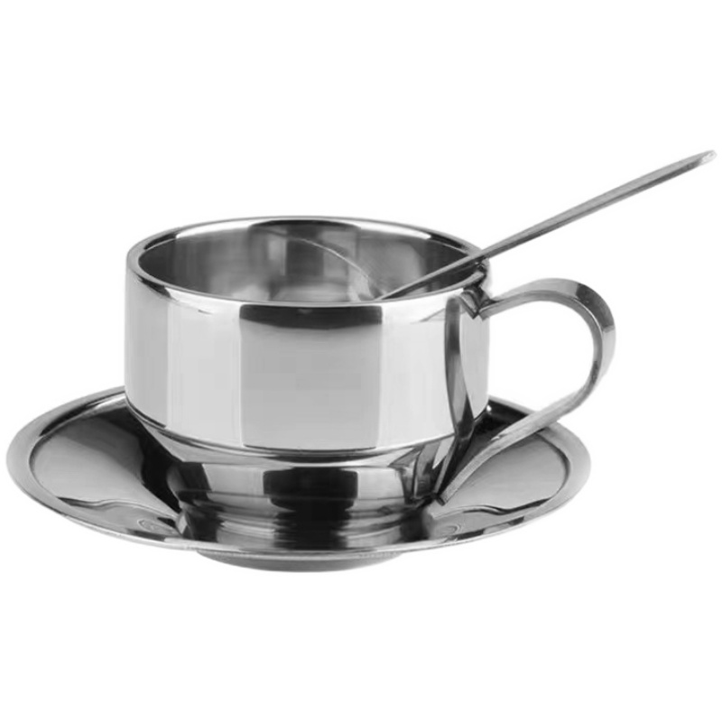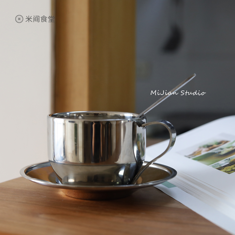 Mijian stainless steel coffee cup and saucer set with spoon ins Japanese double-layer solid color hollow with metal tableware