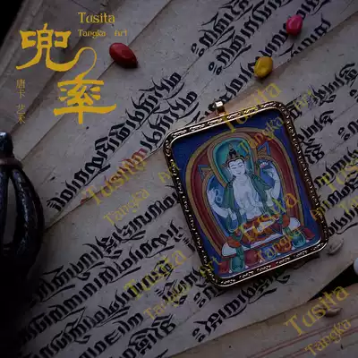 Small Thangka portable Thangka seeking wealth, destiny, Buddha, God of wealth, Tibet, Qinghai, Red Gong hand-painted mineral pigment customization