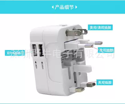 Factory direct travel worldwide universal universal conversion plug dual USB jack socket multi-function