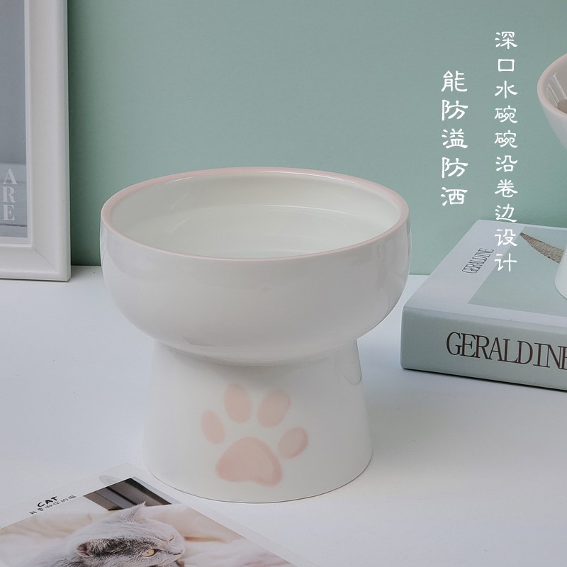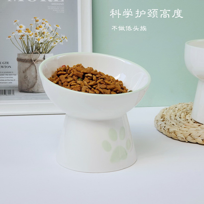 Cat bowl ceramic high foot food bowl cat rice bowl water bowl protection cervical vertebra oblique mouth cat food bowl dog pet tableware