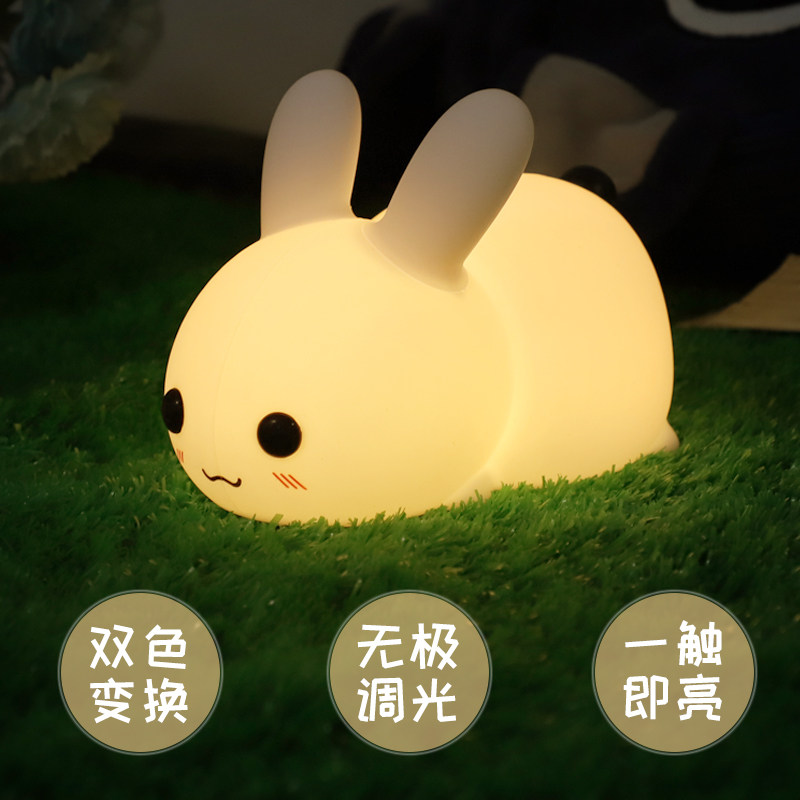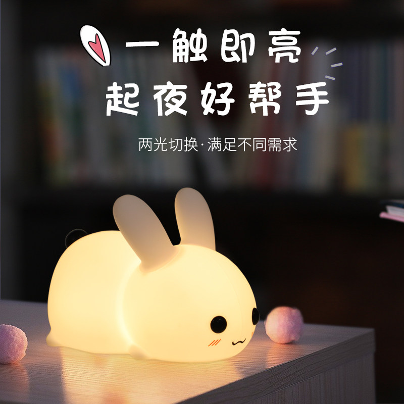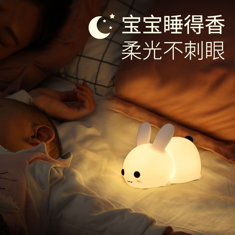 Silicone Rabbit small night light rechargeable baby laced eye bed head lamp child sleep light gift little night light
