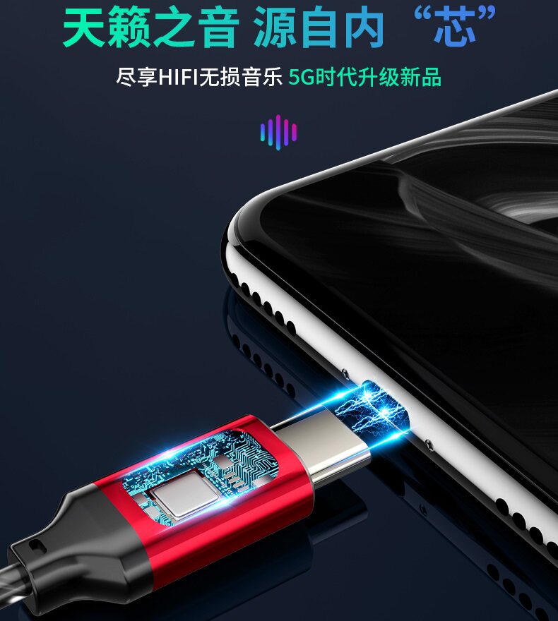 Type-c digital 5G single-sided headset for driving Samsung Note Meizu 18 Huawei P50 Glory VivoX50