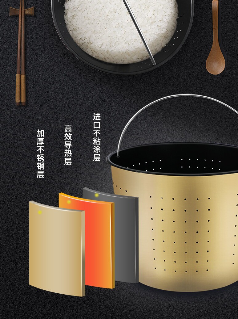 Large capacity fully automatic upgrade steamed rice artifact wood grain stainless steel accessories