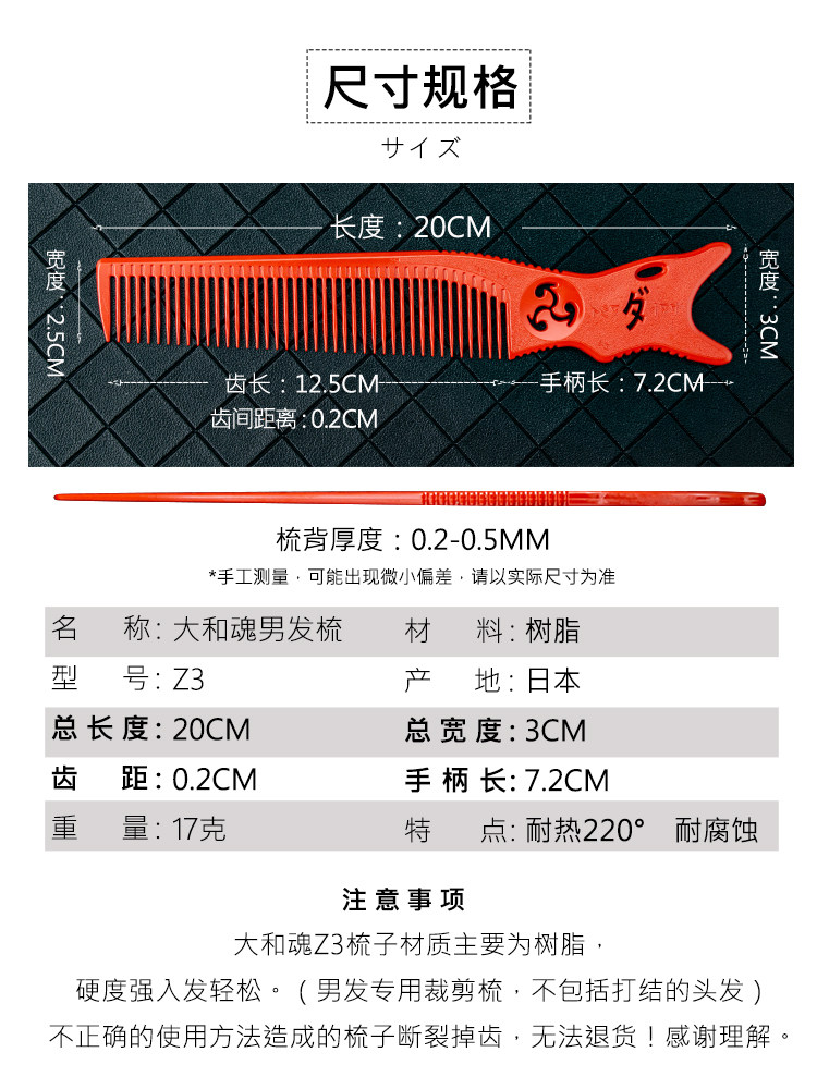 Japan Daiwa Men's comb 209 Richie Corners Comb Hair Dresser Special Push Cut Comb Flat Oil Head Comb