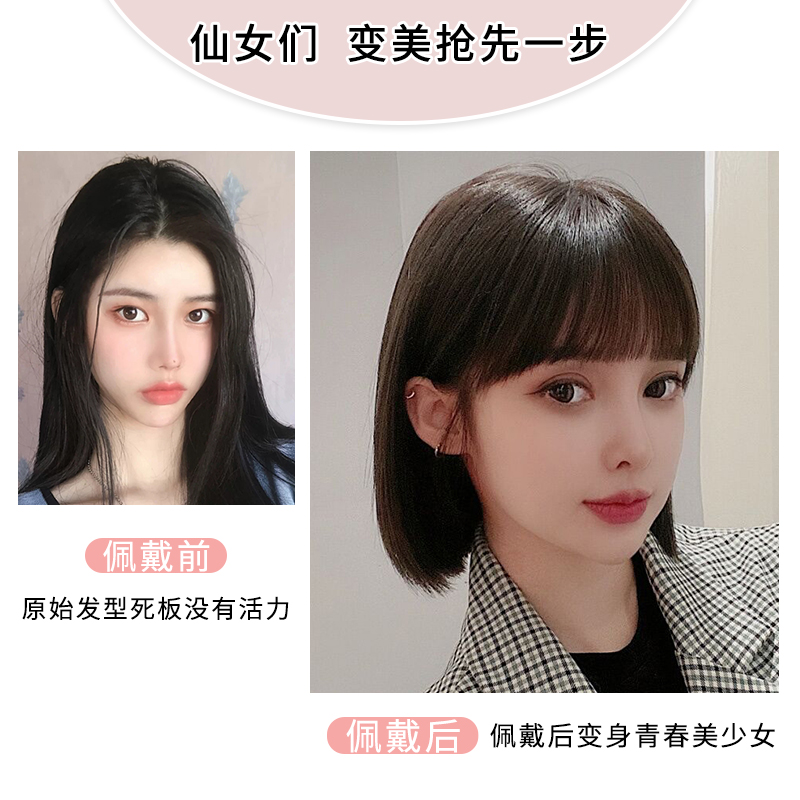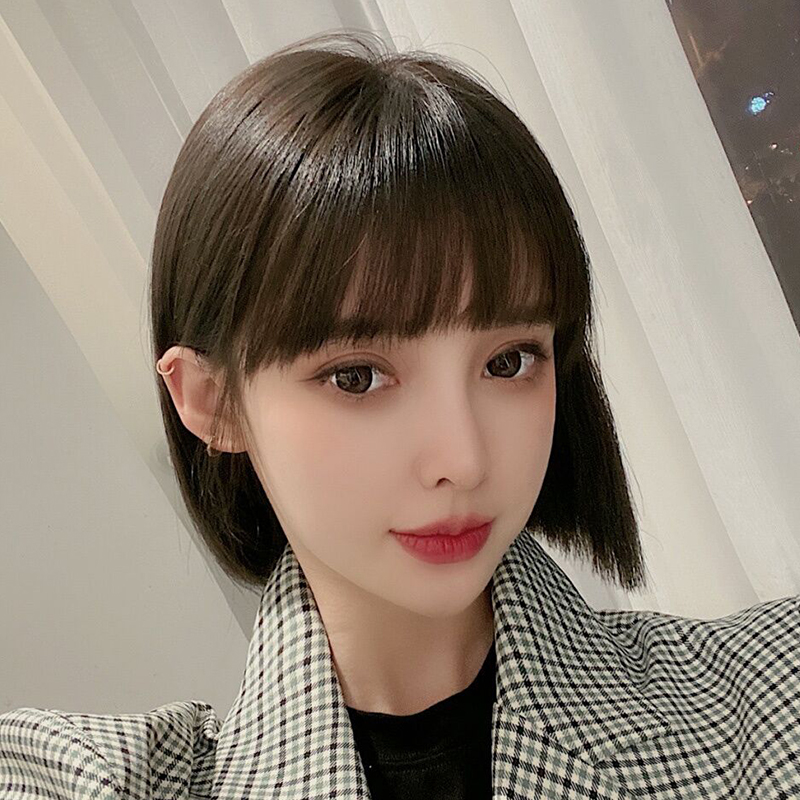 Wig Cover Woman Short Hair Real Hair Headgear Live-action Hair Full Real Wig Natural Adolescent Girl Round Face Wave Head Full Headgear