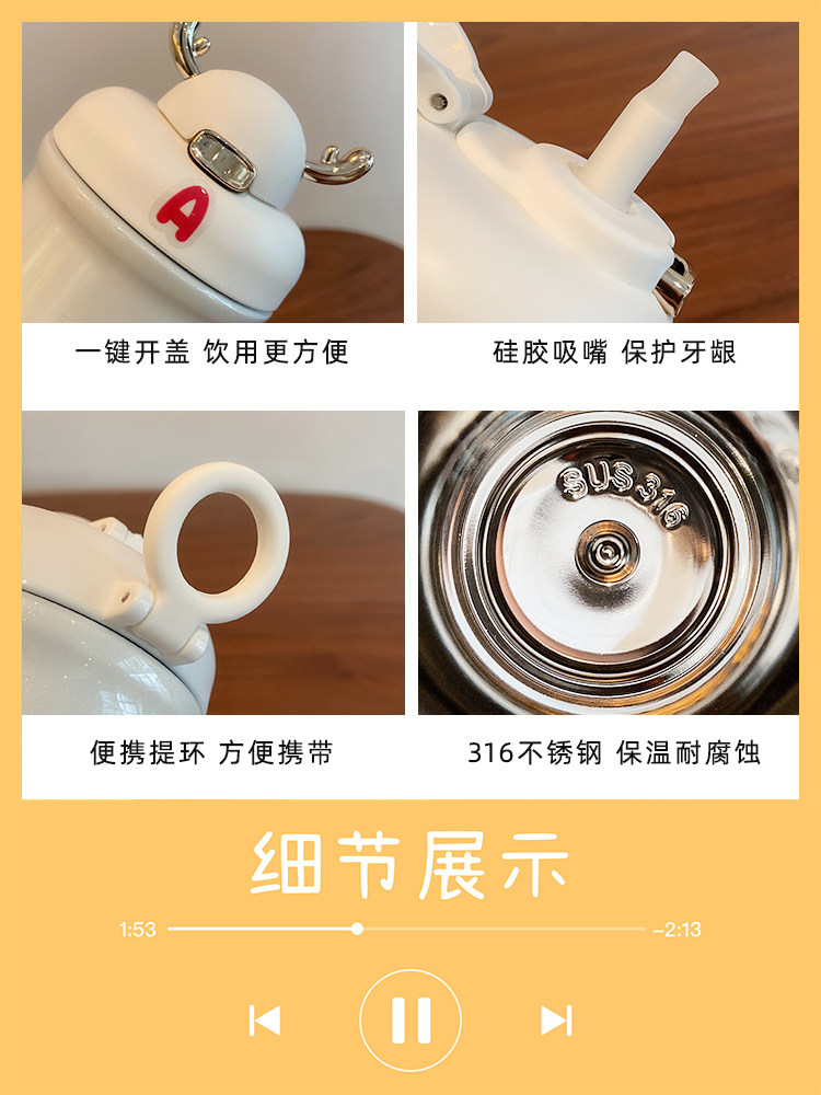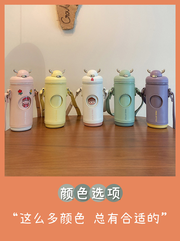 316 stainless steel insulation cup ladies high-end straw water cup portable creative student cup cute girl heart
