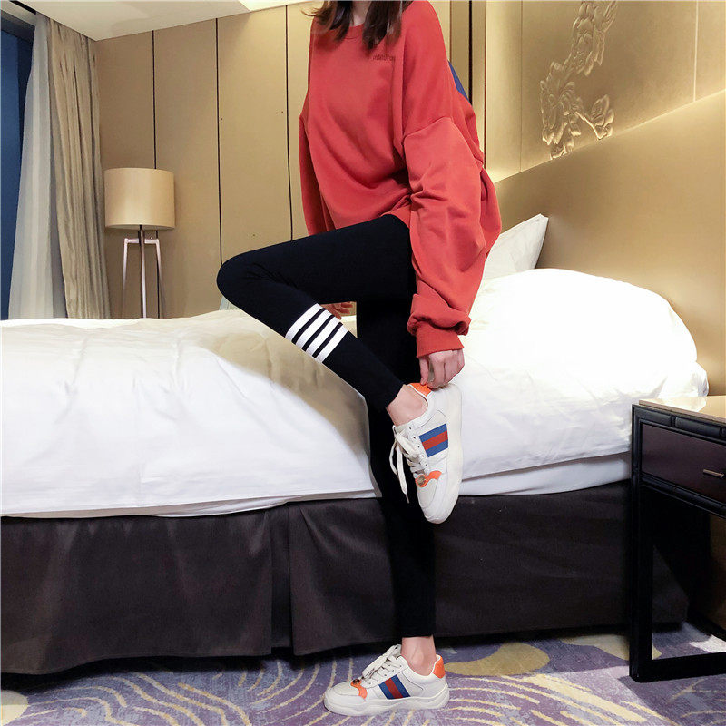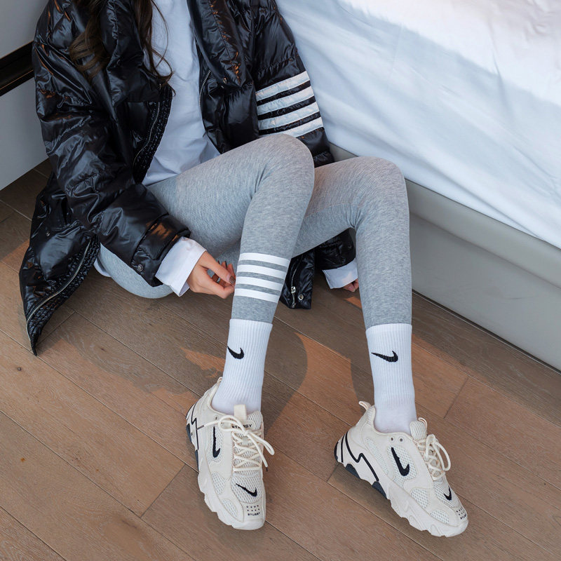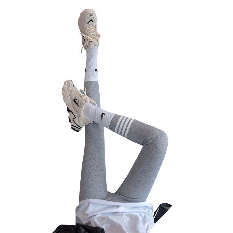 2021 new gray threaded tb leggings women wear spring and autumn thin tight stretch autumn pants plus fleece thick winter