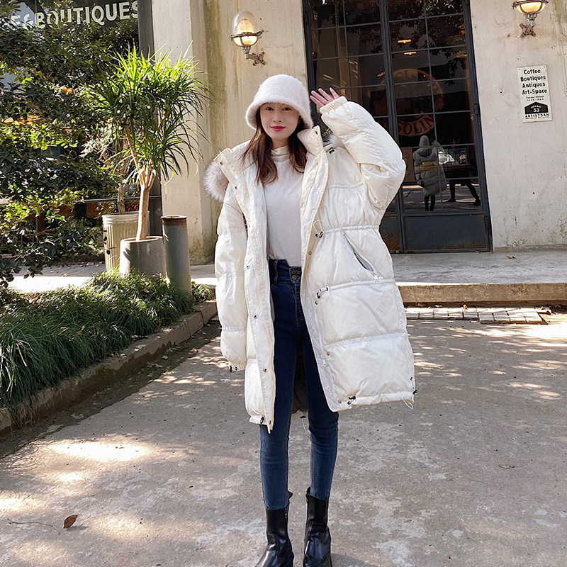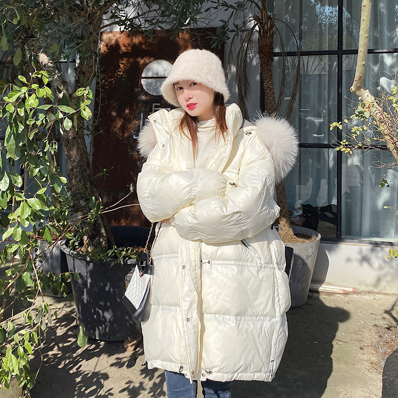 Concubine bright face down jacket women's 2022 new Dongdaemun Korean version loose thickened mid-length large fur collar fashion