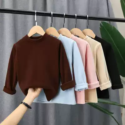Girls sweater 2020 Autumn and Winter new foreign style children's set plus velvet padded base shirt inner take velvet warm coat