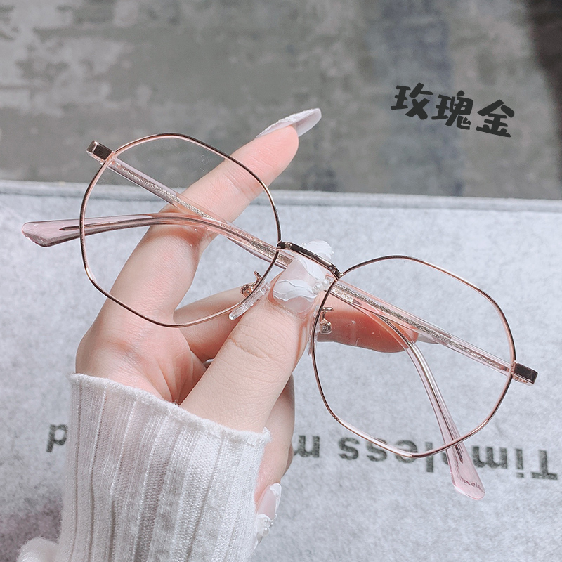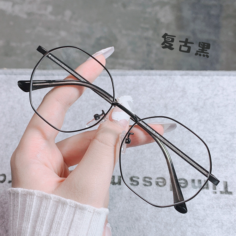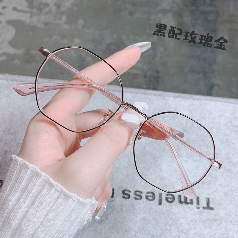 Black fit rose gold (single frame) (fit myopia) mirror frame anti-blue color discoloration lens black (single frame) (no degree) frame resin flat light anti-blue light lens silver color (single frame)