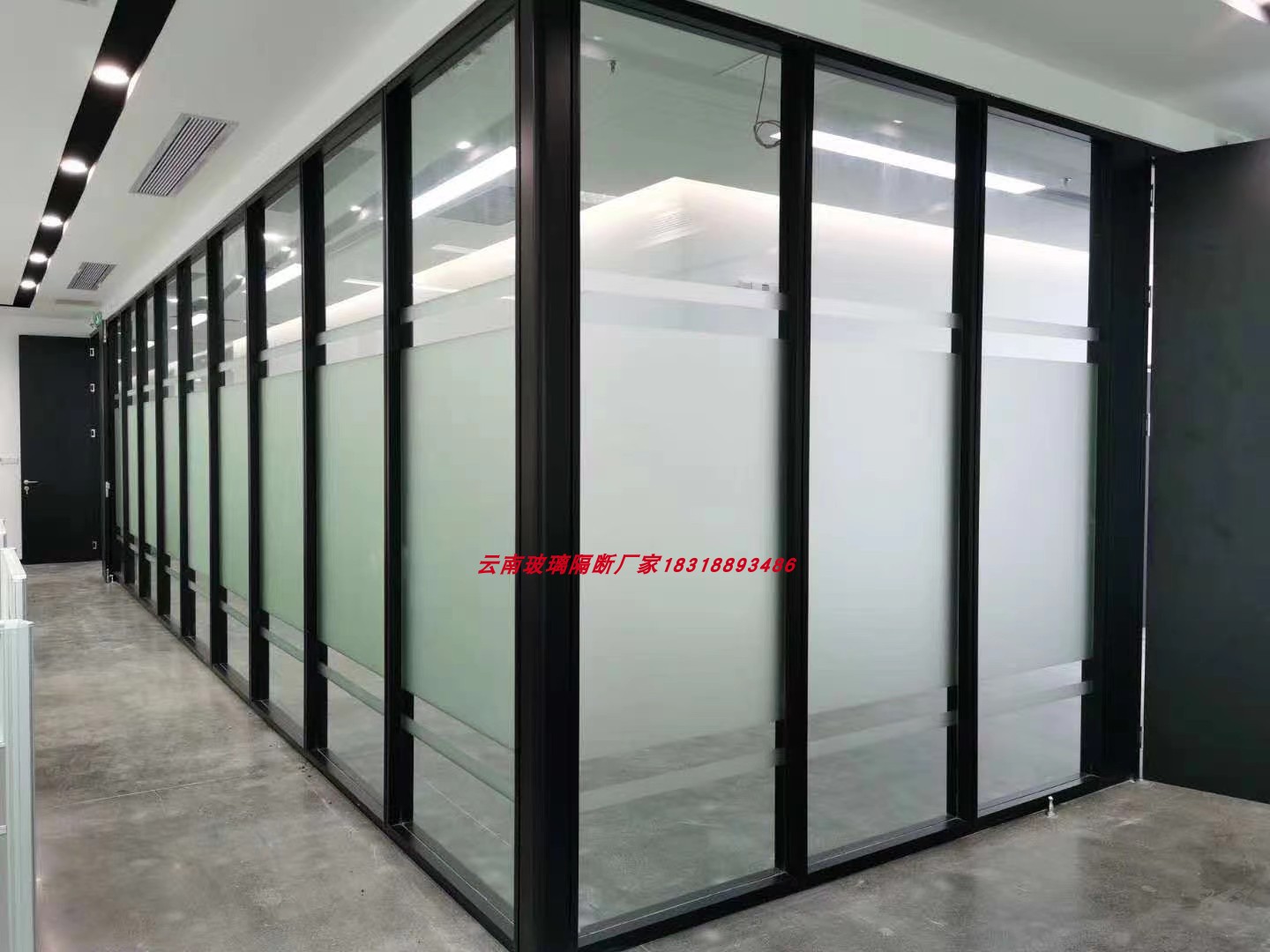 Glass high partition wall office hollow shutter frosted single-glass soundproof aluminium alloy built-in tempered glass screen