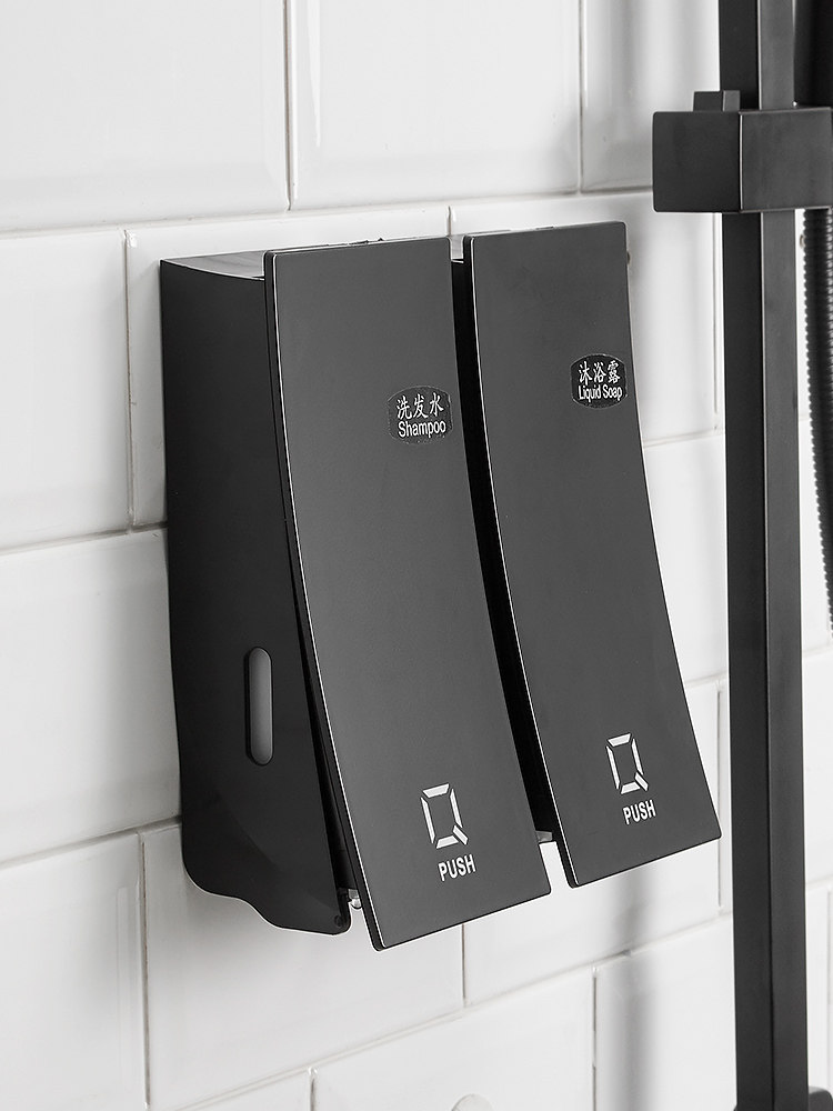 Light luxury hand sanitizer wall-mounted double-headed soap dispenser punch-free bathroom shower gel press bottle hotel shampoo bottle