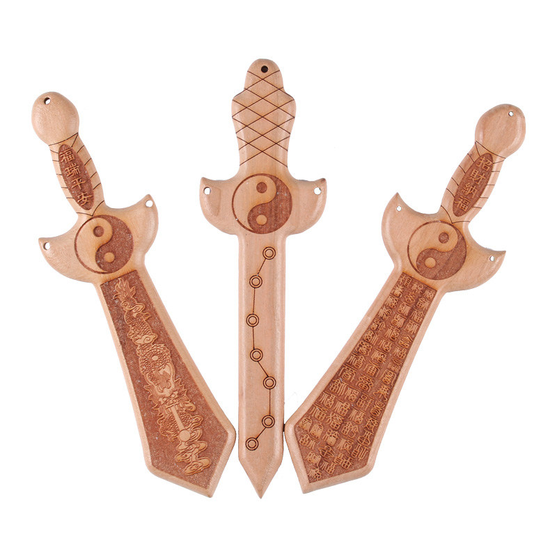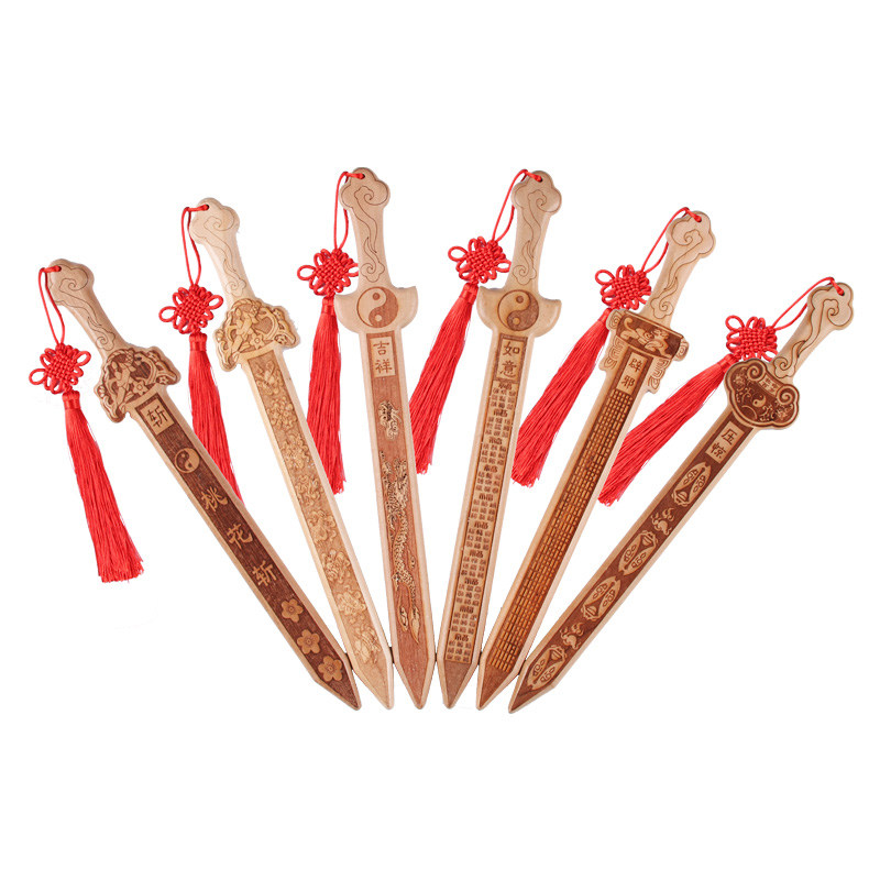 Peach wood sword baby primary color peach wood small pendant children's sword wood carving jewelry portable peach pit sword bedroom living room decoration