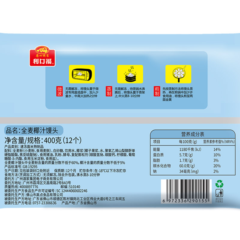 (Guangzhou Restaurant Live Room) Guangzhou Restaurant Whole Wheat Coconut Milk Steamed Bread 400g*2 Bags
