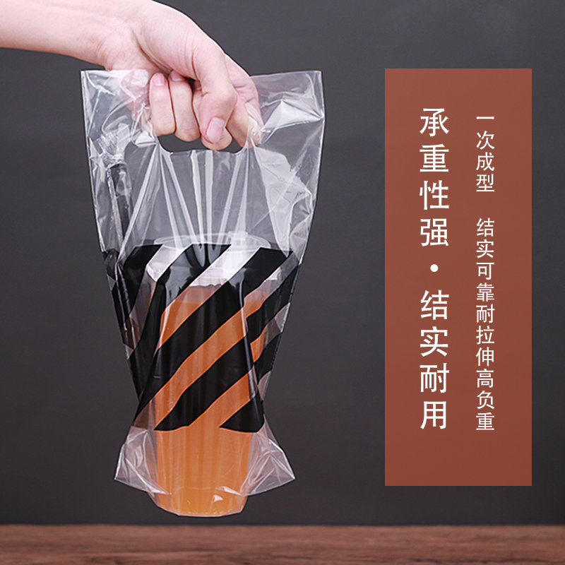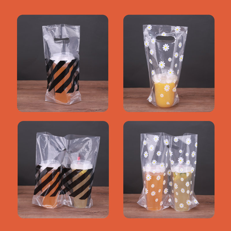 Milk Tea Packaging Bag Plastic Bag Takeaway Drink Cup Bag Single Double Cup Bag Thickened Disposable Handbag Custom Logo