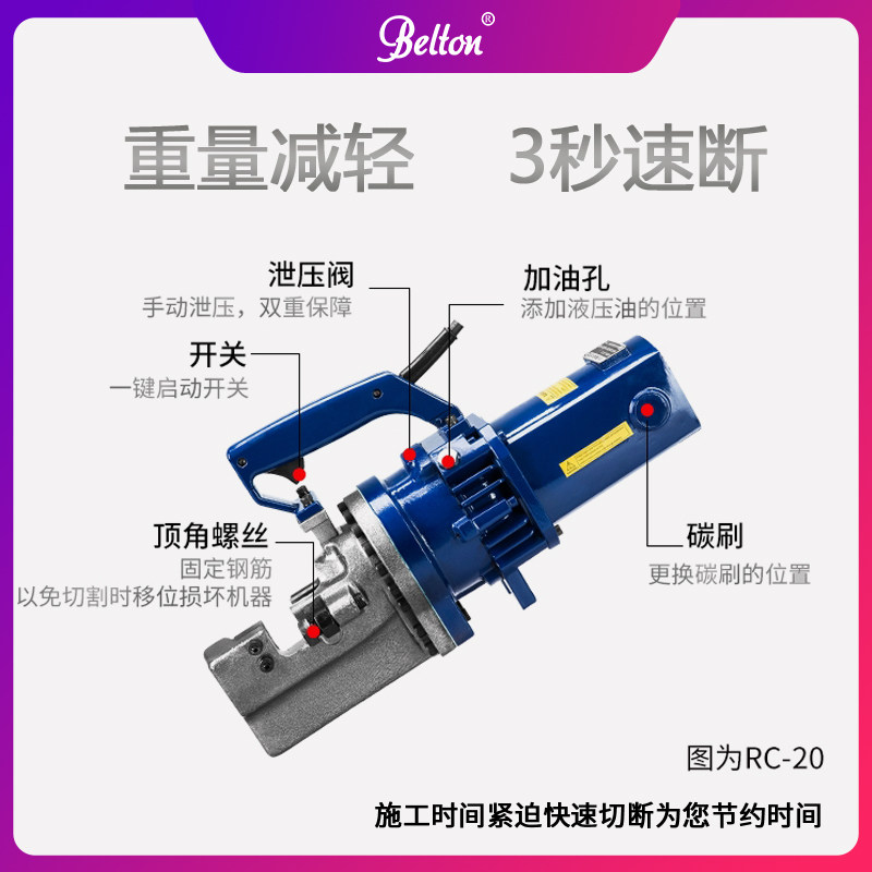 Belton small portable electro-hydraulic rebar cutting machine automatic portable quick breaker round steel rebar truncation