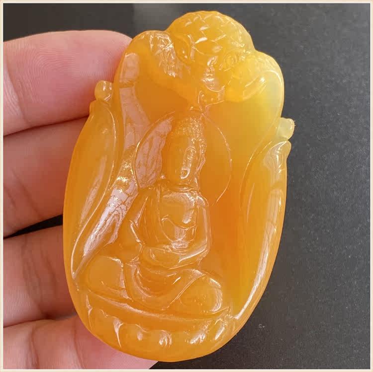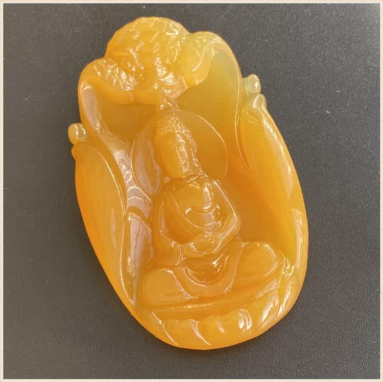 Natural Yellow Dragon Jade Burmese Topaz Avalokitesvara Pendant Avalokitesvara Bodhisattva Boutique Keeping Safe Myanmar Material