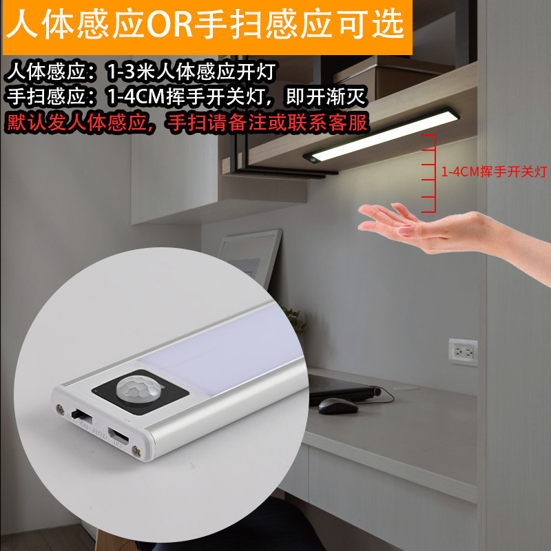 Cabinet light with human body induction wireless led magnetic suction cabinet bottom switch charging bedside display wardrobe dormitory night light