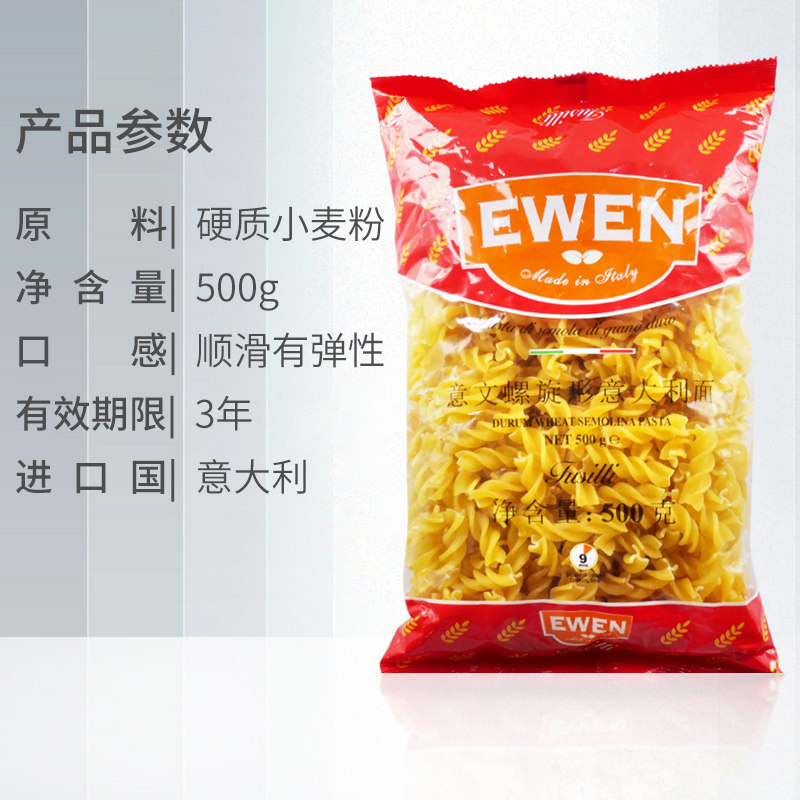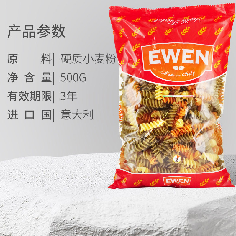 Willin screw-shaped pasta 500g Italian color screw-shaped pasta 500g Italian pasta 500g Italian ink fish juice noodles 500g screw-shaped three