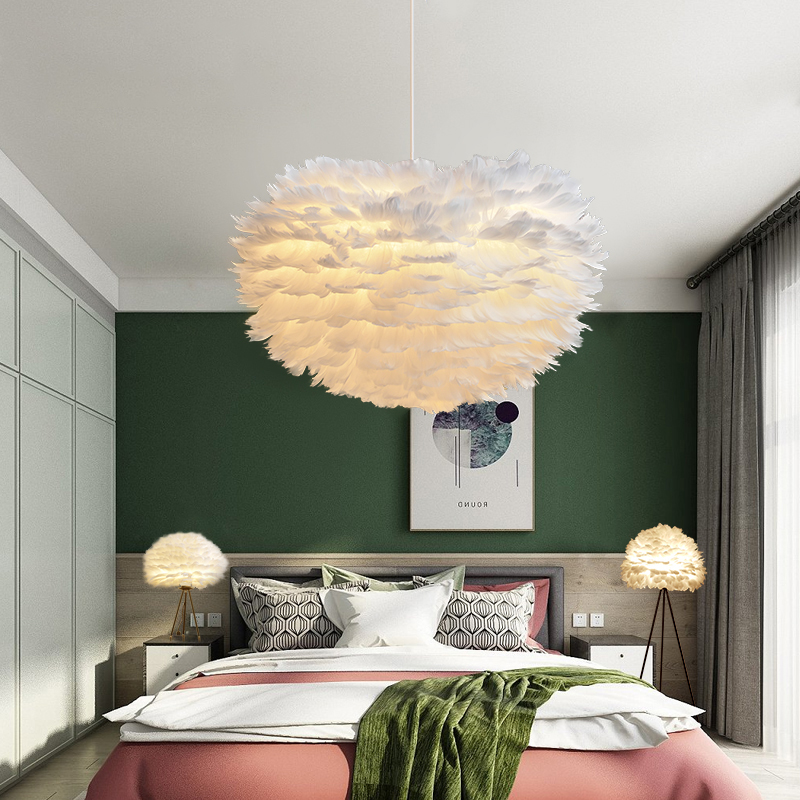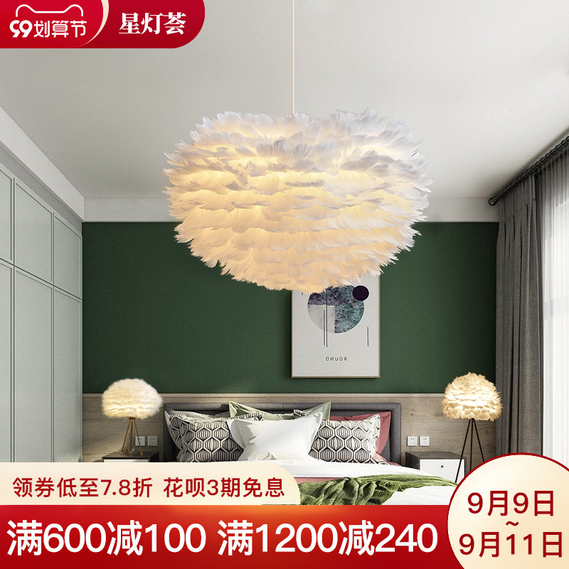 Net Red Ins Feather Pendant Lamp Cozy Romantic Teenage Girl House Lamps Nordic Creative Girl Room Bedroom Light