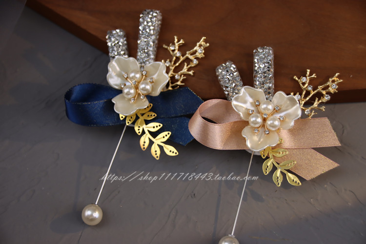 2021 New Original Handmade Champagne Powder Blue Diamond Branches Chest Needle New Bridegroom Bridal Bridal Wedding Opening Event Chest Flowers