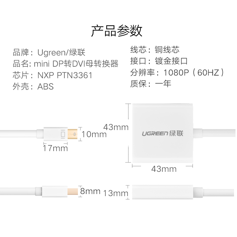 UGREEN Green Union MiniDP TransDVI Converter Surface Expands Mini Dp Adapter Thunder