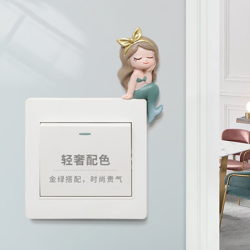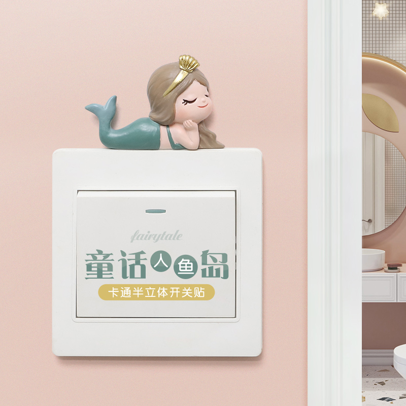 Mermaid cartoon semi-stereo switch sticker socket panel protective sleeve creative lamp decorative wall sticker home punch-free