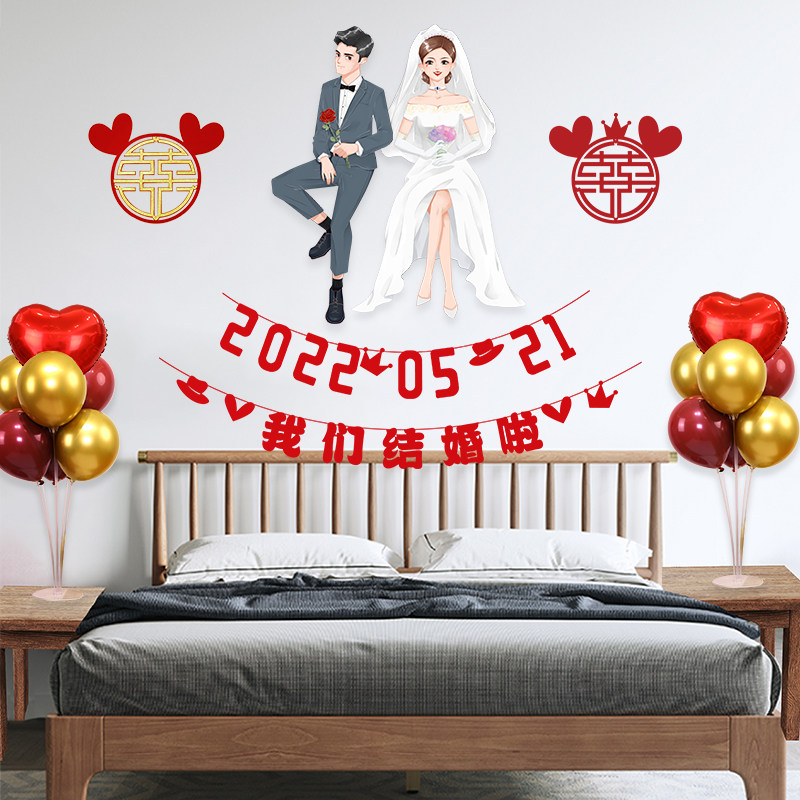 Happy Words Sticker paper Wedding House Arrangement Suit Small Decoration New Room Bedroom Women's Wedding Wedding Wedding Wedding Supplies Grand Total
