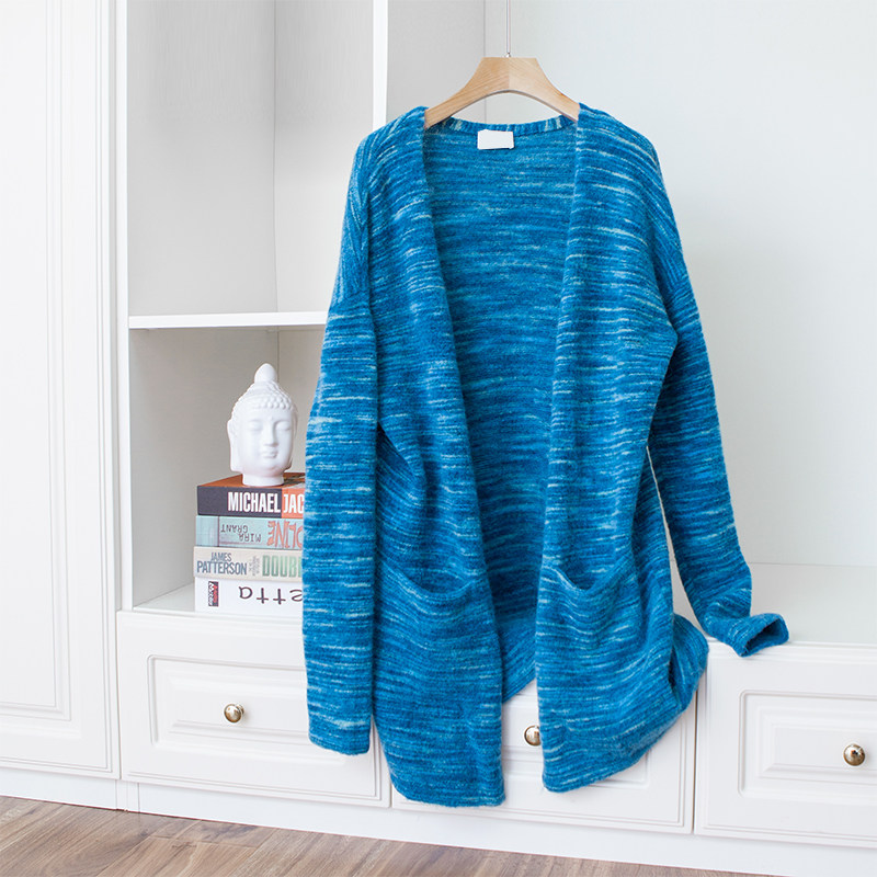 Small number of pieces Nordic design warm loose wool Moose wool Lazy Unbuckle Mid-Knitted Cardiothic Tq