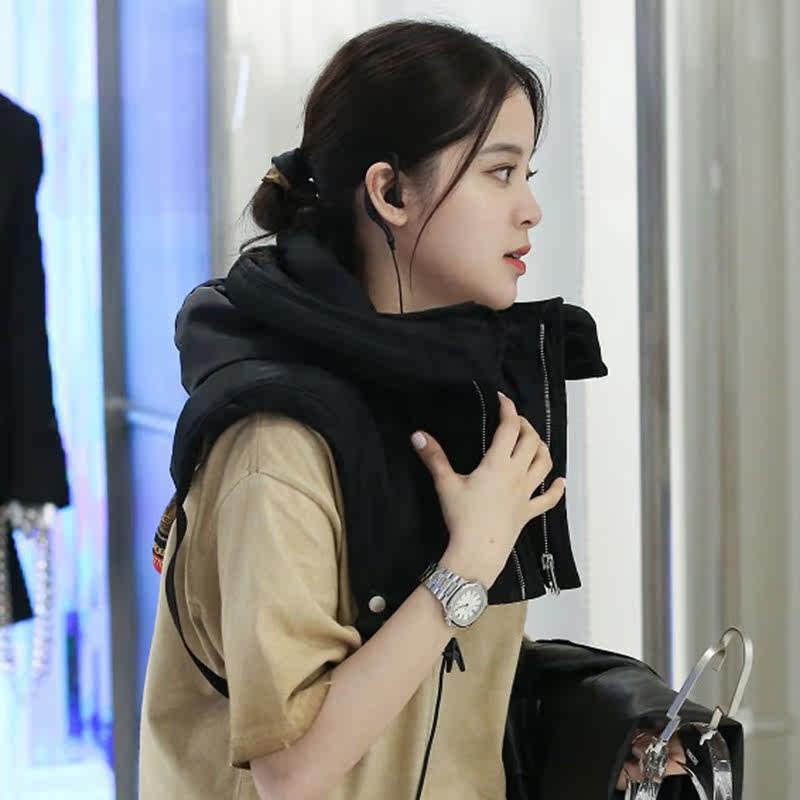 Trendy partner Ouyang Nana Tongan Shoulder Jacket Jacket Blouse Female Design Sensation Semi-Cut Vest Mawl Lady Autumn Winter