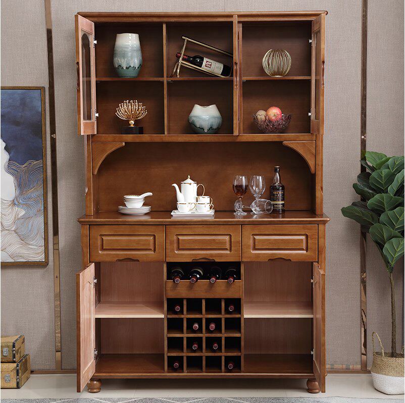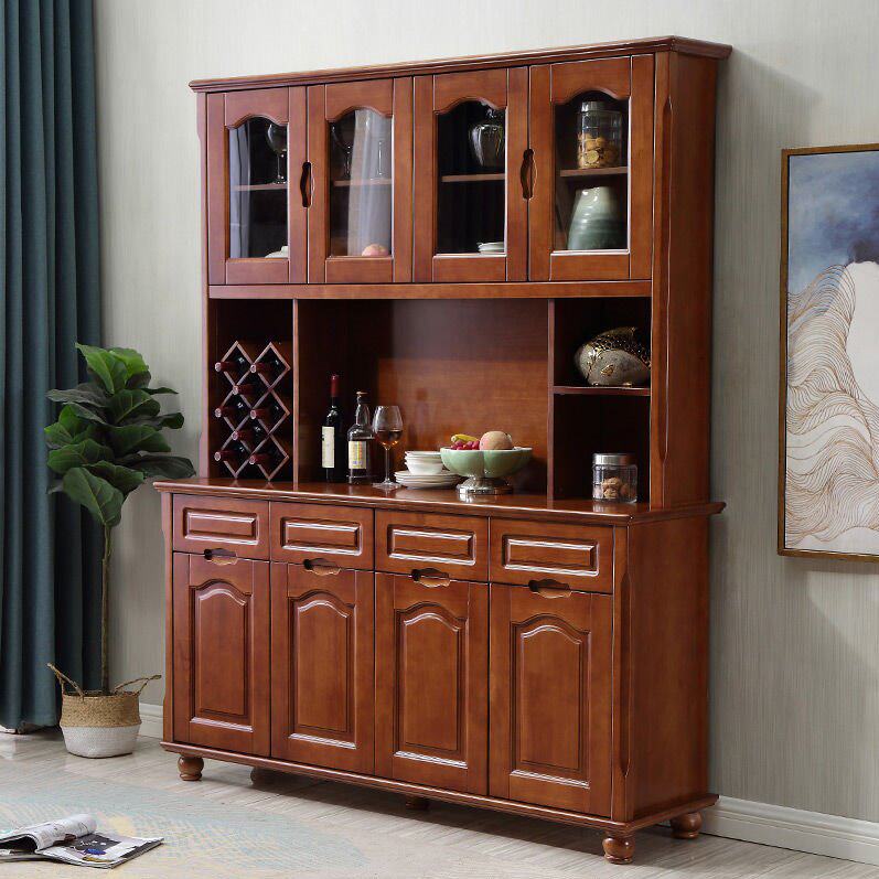 Chinese style solid wood wine cabinet simple modern dining room large living room against the wall sideboard multi-function locker with glass door