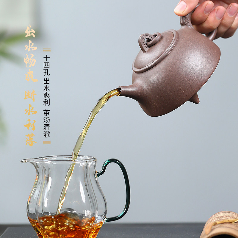 Award - winning Gold - winning State Worker Jiang Hunlong Sanyuan Tianxi Qingyu 260cc raw mine Yixing Purple Glass Tea Set