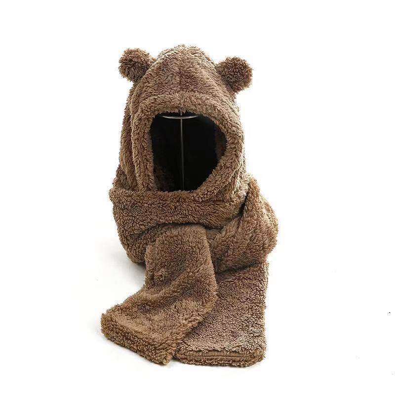 Bear ear hat female autumn and winter cute plush scarf gloves one Korean version of the ear thickened warm three-piece set