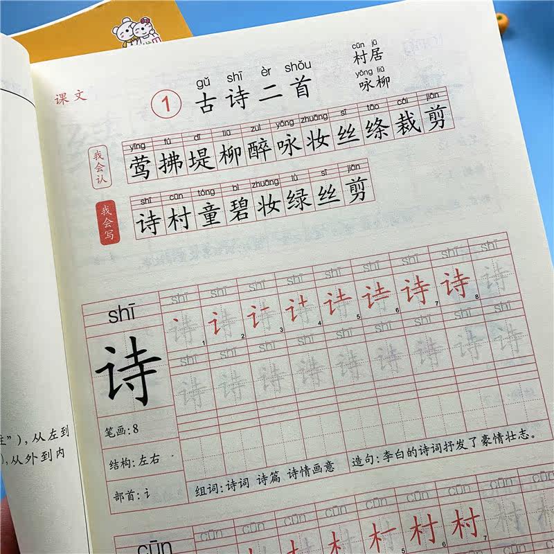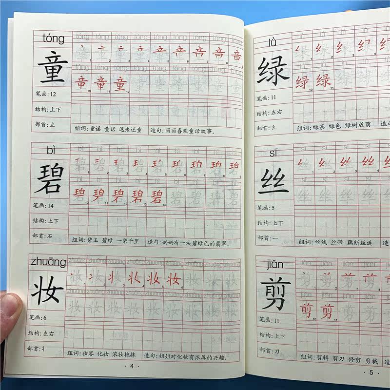 Second grade book people teaching version of the simultaneous red follow the text to write Chinese characters primary school students Chinese practice character post beginners