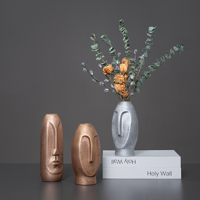 Creative vintage nostalgic flower vase abstract face ceramic vase Model room living room flower arrangement Home decoration ornaments