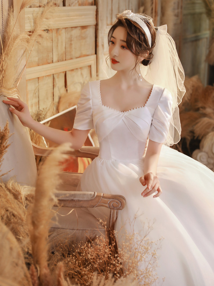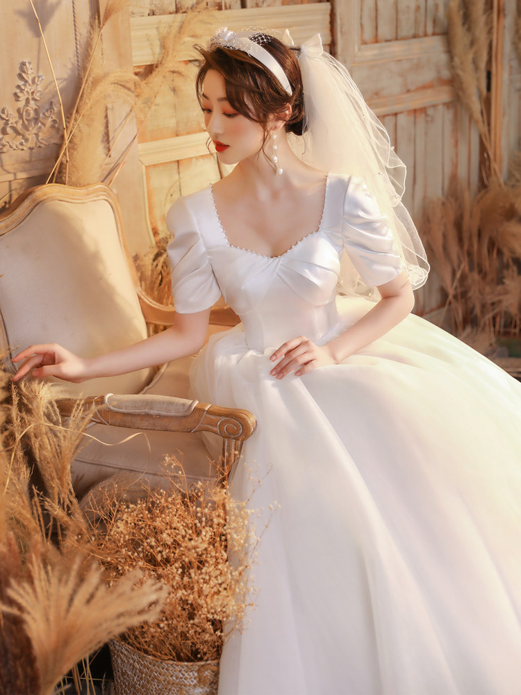 Satin wedding dress pregnant bride high waist and shade wedding dress 2022 new temperament shading arm simple little