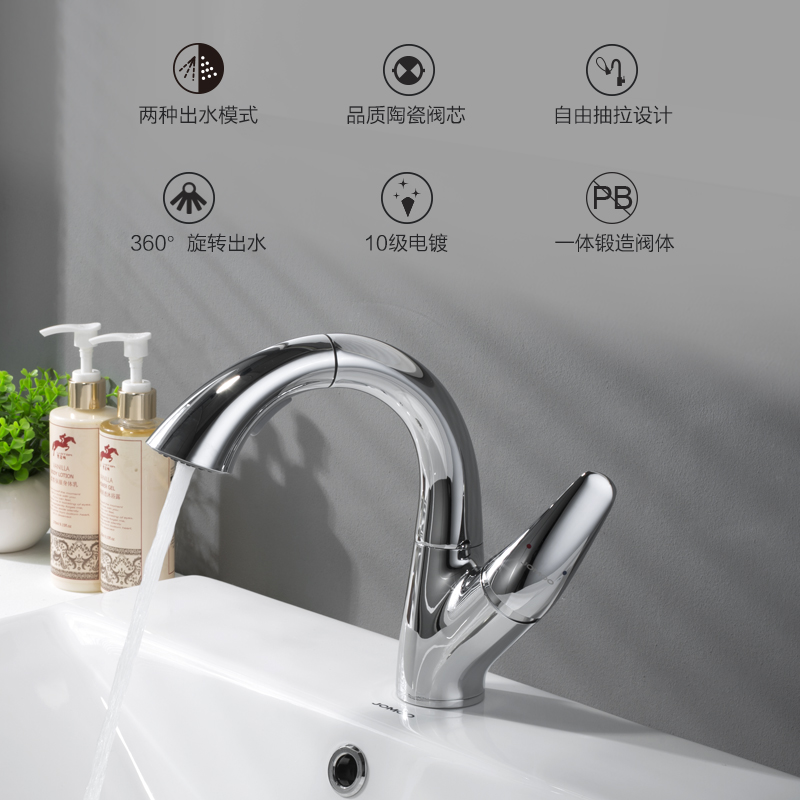 JOMOO 9-Pastoral Bathroom Tap Wash Hand Basin Tap Single Hole Cooling and Heat Pull Noodle Tap